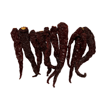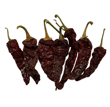 Type: Hybrid hot pepper; long, slightly wrinkled; deep red when dried